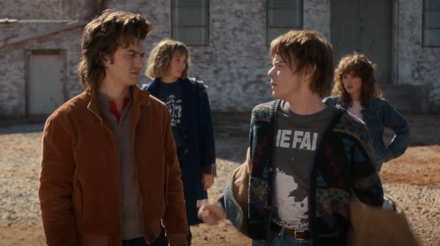 Особое внимание уделяется второстепенным персоналам, чьи роли расширились. Дастин, потерявший друга Эдди в предыдущем сезоне, носит футболку «Клуба Адского Пламени» как знак памяти, стоически терпя нападки хулиганов. Это деталь подчеркивает тему потери невинности: герои больше не просто играют в игры, они живут с последствиями реальной смерти. Нэнси Уилер эволюционирует в тактика и боевую единицу группы, чья экипировка в финальной битве отсылает к образам героев боевиков восьмидесятых, в частности к Рэмбо. Стив и Джонатан, чье соперничество за внимание Нэнси стало лейтмотивом ранних сезонов, в финале приходят к определенному равновесию, хотя их линия иногда воспринимается как комическая разрядка в напряженном повествовании.