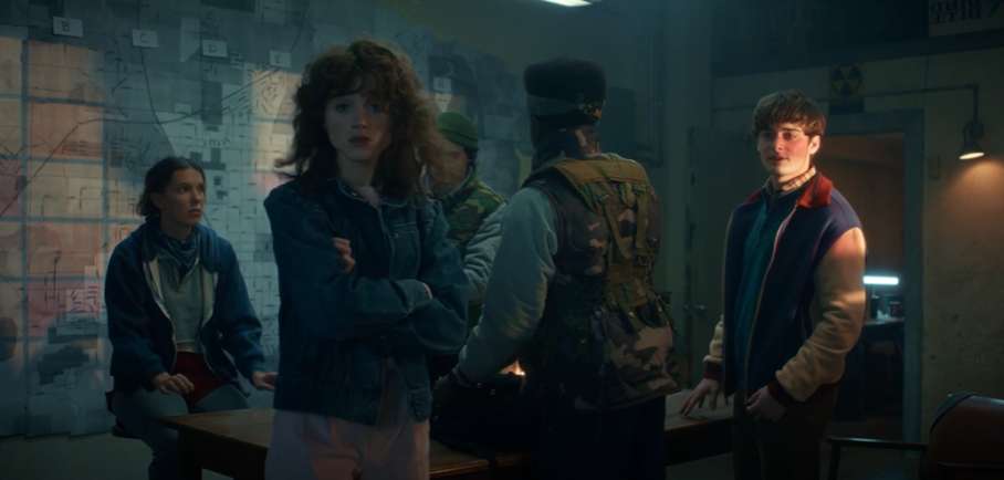 Действие финального сезона разворачивается в мире, который уже не будет прежним. Прошло полтора года после катастрофического нападения Векны, и городок Хоукинс превращен в закрытую военную зону. Гигантские разломы, образовавшиеся в предыдущем сезоне, залатаны металлическими конструкциями, которые местные подростки используют как горки, не до конца осознавая масштаб угрозы. Это визуальная метафора того, как общество пытается нормализовать травму, превращая ужас в обыденность.